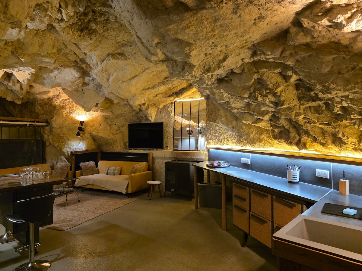 Entre les vignes, les chemins de randonnées, la Loire à vélo et à 5 kms d’Amboise, Anne-Sophie et Nicolas vous accueillent au cœur de la roche dans un gite troglodytique centenaire rénové. « Le Pressoir » vous propose dans un cadre naturel à flanc de coteau deux chambres, une salle de bain, cuisine et salon ouvrant sur la terrasse. La température constante de la roche vous offrira la fraîcheur en été (n’oubliez pas votre gilet) et la douceur en hiver. Au plaisir de vous accueillir ..