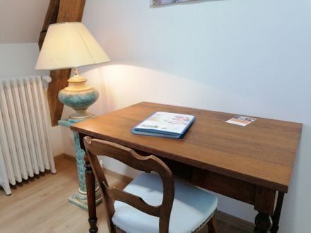 Vous adorerez le décor élégant de cet hébergement de charme. Votre chambre se trouve au deuxième étage , avec une salle de bain privative. Un espace pour préparer vos repas est réservé aux locataires . Nous pouvons également vous proposer vos déjeuners où dîners pour 14€/pers(apéritif au café et un verre de vin) et petits déjeuners 6€/pers. L’été vous bénéficiez d’une table, transats dans le jardin et piscine (horaires) possibilité 1 ou 2 ch supl à 19€/et 15€chacune