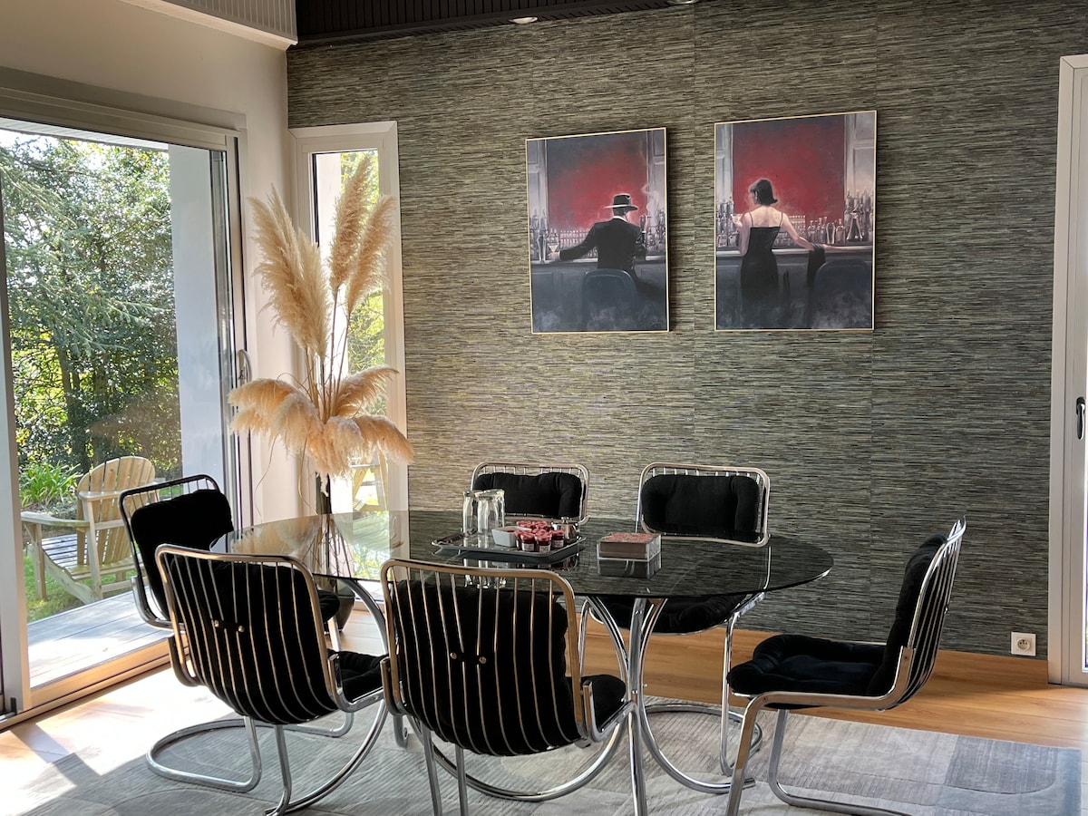 Vous adorerez le décor élégant de cet hébergement de charme. La maison est à une heure de Rennes Angers où Le Mans. Une heure et demie des Châteaux de la Loire,de Saint Malo et du Mont Saint Michel. De la maison vous pouvez rejoindre le Vieux Laval à pied ou faire une balade sur le halage. Je mets aussi des vélos à disposition