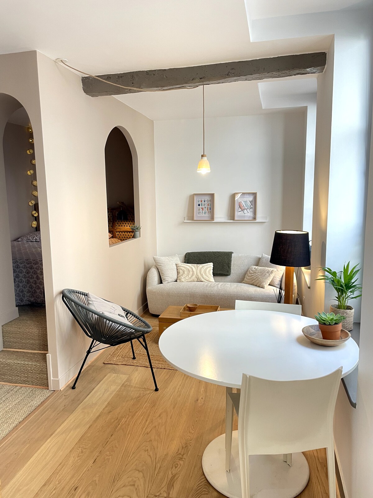 Dans un charmant appartement 2 pièces cuisines indépendant, vous êtes au cœur de la ville en rue piétonne à 300 m de la plage et à 10 minutes à pied de la gare. Endroit très cosy, bien équipé ; le charme de la campagne au bord de mer. Un parking Indigo se trouve à 50 m du logement. Local vélo privé à disposition au rez de chaussé.