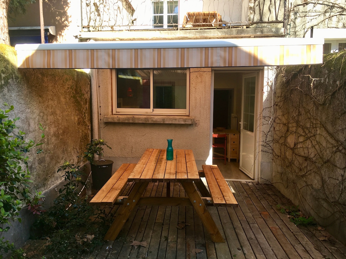 Troglodyte, atypique, calme en pleine ville, jardin+terrasse 1-4 pers.(1 lit+1 canapé-lit dans le salon) Espace 1 : Salon (1canapé-lit)-TV, salle à m., cuisine, Espace 2: 1 chambre, sdb/wc Les deux espaces sont non communicants, (il faut passer par l'extérieur privé pour aller de l'espace 1 à l'espace 2, et il faut passer la chambre pour aller aux wc/sdb). Accès à pied par des escaliers étroits, parking public gratuit, non surveillé à 5min à pied. Pas de WIFI. Draps de lit et de bain fournis.