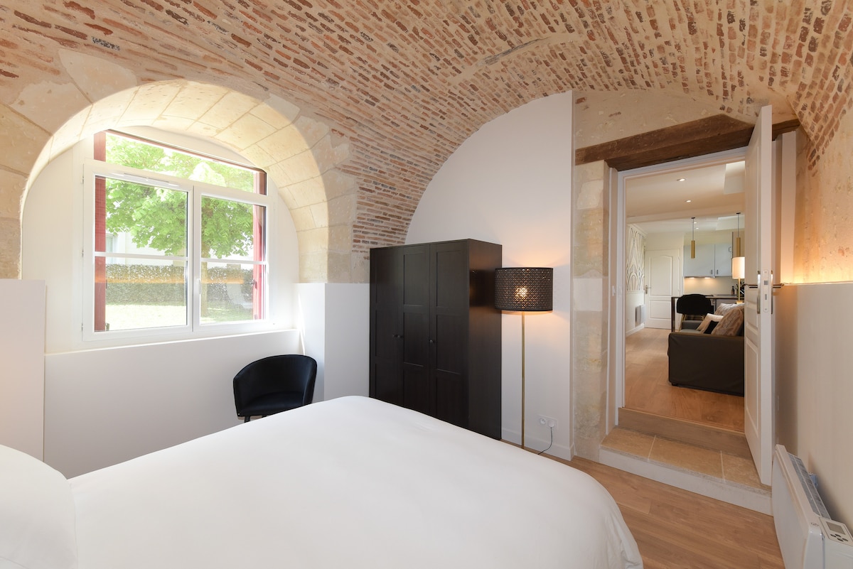 Cet appartement situé dans le centre d'Amboise vous accueille au rez-de-chaussée d'un monument historique, la maison natale de Louis Claude de St Martin. La chambre voûtée, au calme, donne sur le petit jardin commun aux autres appartements de la Maison du Philosophe et dispose d'un lit queen size. Vous pourrez vous garer gratuitement sur la place Richelieu devant l'appartement.