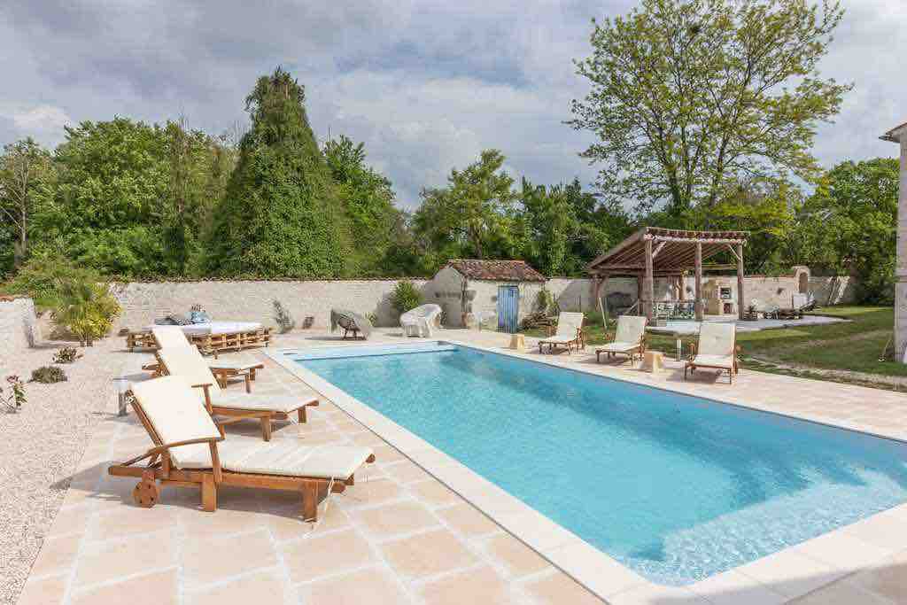 We welcome you to our "Maison du Gardien" ( The Caretaker’s House) a 19th Century distiller's house which has been lovingly renovated to create a place of contemporary design, contemplation and relaxation. Located next to our own home you can enjoy an evening meal on your own private terrace but also get the use of our pool, gym, bikes and parking on our gated property. The two bedroom house is light and airy with beautiful views over our garden which reaches down to the river Charente.