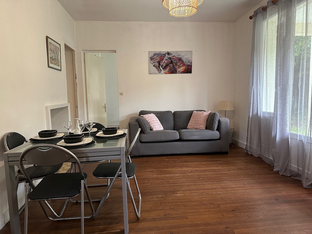 Magnifique T2 rénové à neuf de 80 m2 en plein centre de Cognac, dans l'ancienne Banque de France. Idéalement situé pour les festivités (festival Blues Passion, fête du Cognac...). Le logement comprend une chambre avec un lit de 140, une salle d'eau. Le salon est équipé d'un canapé convertible 2 places. Magnifique terrasse de 100 m2 au calme, avec vue sur les toits de Cognac. Possibilité de garer son véhicule dans le parking souterrain de l'immeuble.