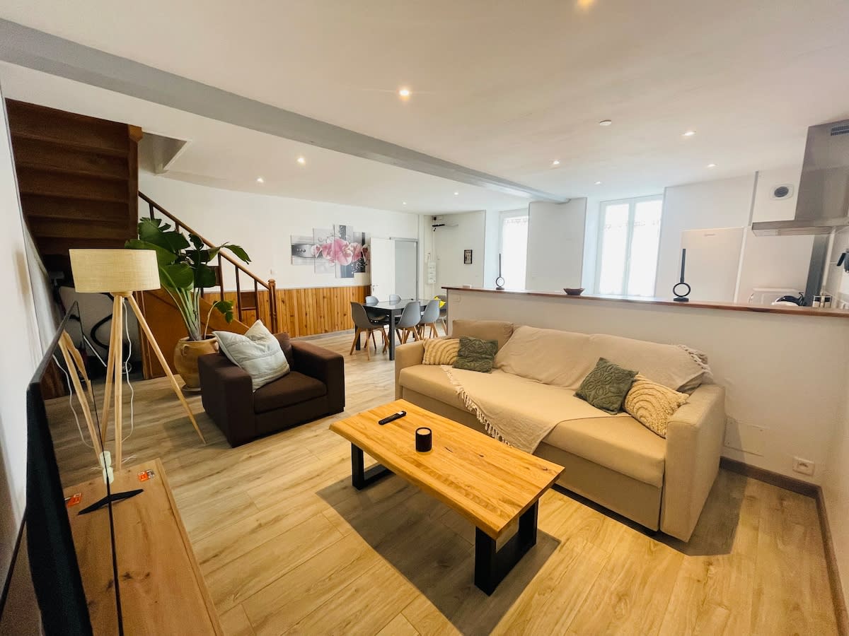 Bienvenue à Cognac ! Je vous accueille chez moi, dans un spacieux loft refait à neuf. Constitué d’une suite parentale de 25m² avec pièce d'eau, d'une seconde chambre, d’un large salon/cuisine. Situé en plein cœur du centre ville, à 5min à pied de la place François 1re et des quais. Parking gratuit partout dans le quartier, très calme situé dans une impasse. Le logement idéal pour découvrir la ville pendant quelques jours !