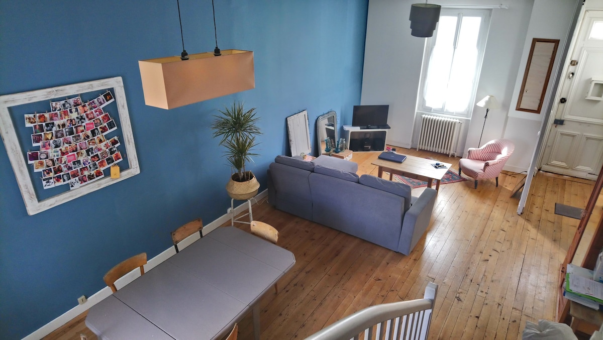 Bienvenue à Cognac ! Je vous accueille chez moi, dans un spacieux loft refait à neuf. Constitué d’une suite parentale de 25m² avec pièce d'eau, d'une seconde chambre, d’un large salon/cuisine. Situé en plein cœur du centre ville, à 5min à pied de la place François 1re et des quais. Parking gratuit partout dans le quartier, très calme situé dans une impasse. Le logement idéal pour découvrir la ville pendant quelques jours !