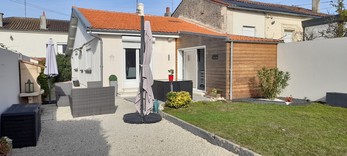 🏡 Maison privative avec mini piscine balnéo chauffée au sel & bulles, à 10 min à pied du centre de Cognac. 2 chambres avec lits queen size(160cm) et TV connectée, salon cosy avec grand écran, canapé cuir convertible. cuisine équipée, ( cafetière nespresso) Cour privative avec barbecue . Mini-piscine balnéo couverte (4 x 2,5 m), chauffée 30 à 32°C en hiver et 28 à 30 °C en été, où bulles massantes et eau salée offrent un instant de détente raffiné Maison idéalement située, dans une rue cal