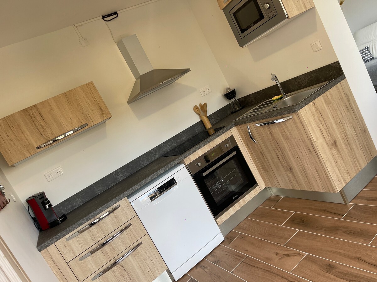 High-end accommodation ideally located in Cognac, just steps away from shops and the major cognac houses. Two comfortable bedrooms with premium mattresses ensure peaceful nights. The minimalist décor, with soft and modern tones, creates a warm and relaxing atmosphere. Every detail has been carefully considered for your comfort, in an elegant and functional setting. A refined haven for an unforgettable stay in the heart of the city.