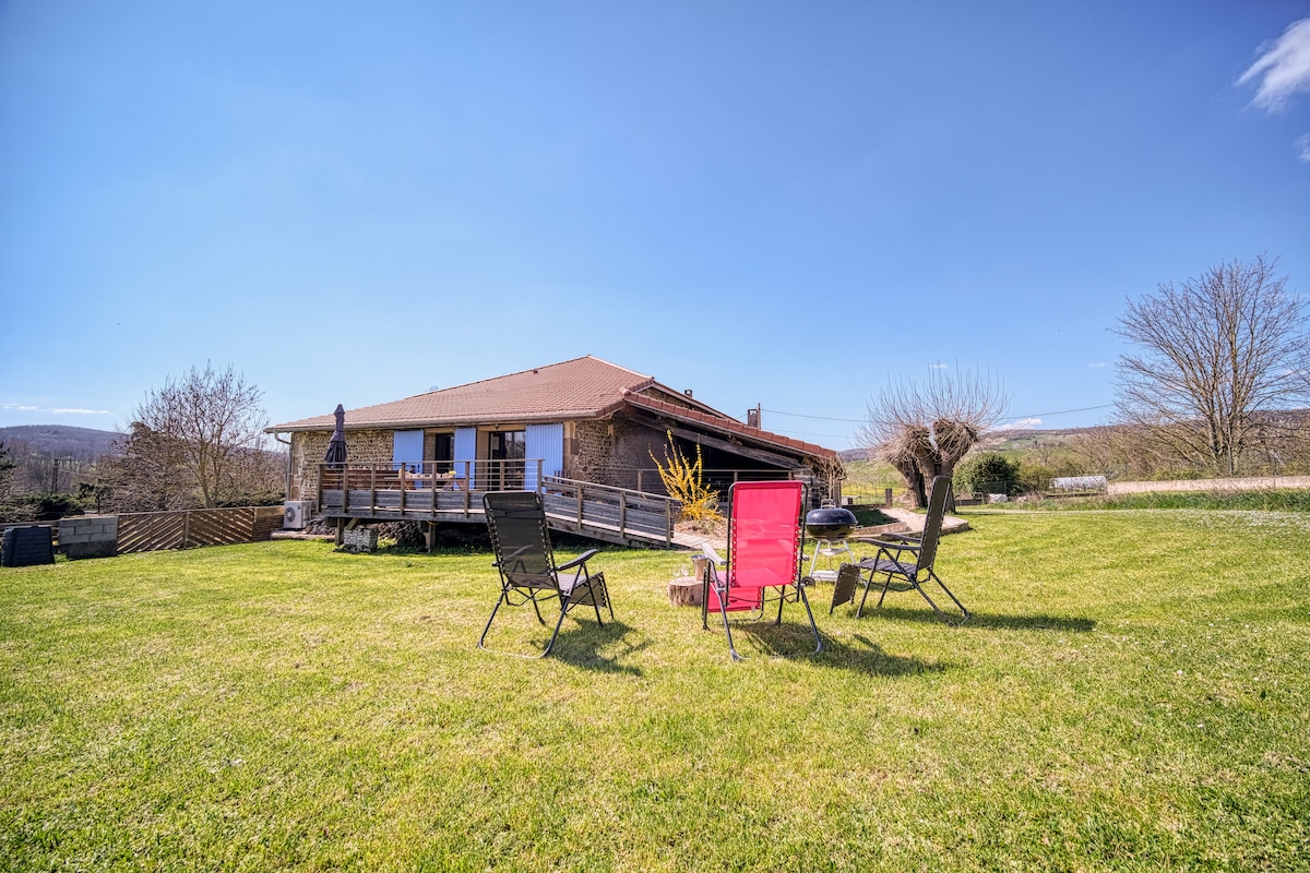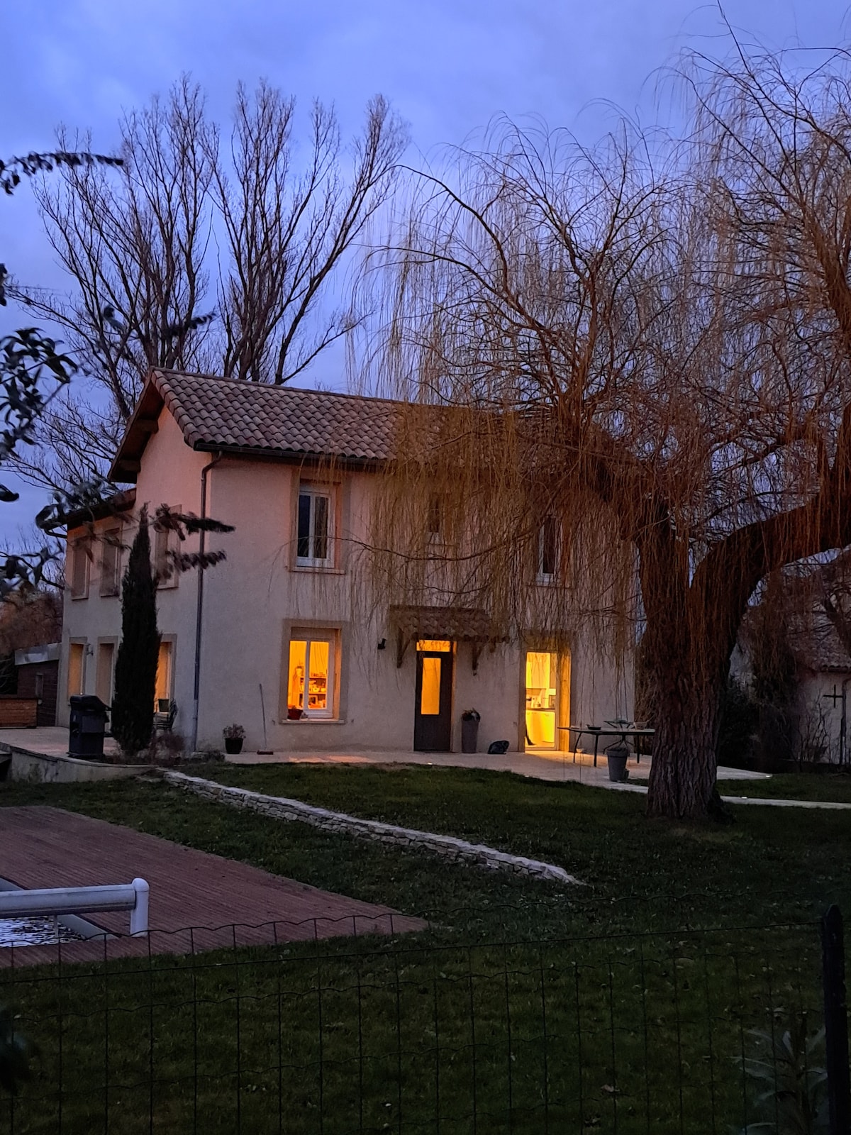 Meublé de tourisme classé 3 étoiles. Dans un parc de plus de 3 hectares entouré de bois, la maison a vue au Sud-Est sur le Vercors. Vous entendrez suivant la saison pic-vert, coucou, chouette, crapaud accoucheur... Sur le site en dehors du logement du propriétaire il n'y a qu'un gite. En l'absence de voisins, le parc se prête au naturisme pour les pratiquants.