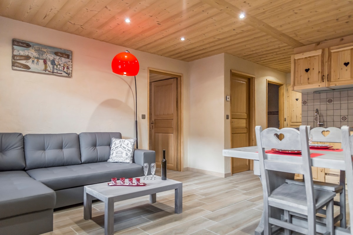 Dans un chalet situé au calme, découvrez cet appartement de charme typiquement savoyard pour 4/6 personnes. Il se trouve au rez-de-chaussée du chalet, est neuf, fonctionnel et entièrement équipé. Il sera une location idéale pour vos vacances à la montagne, situé à deux pas du télécabine qui rejoint le domaine skiable des Portes du Soleil. Vous disposez également d'un grand espace extérieur de 200m2. Les lits sont faits à votre arrivée et des serviettes de bain sont à votre disposition.