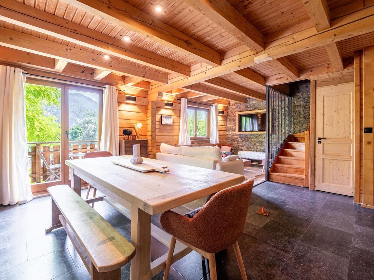 🏡 Our little chalet is waiting for YOU ! 🏡 Warm, bright, and functional, it will be your charming little haven during your getaway to discover our beautiful region ! Perfect location near A40 motorway : reach Geneva in 15 min, Annecy in 30 min, Chamonix in 45 min. Ski resorts: Les Brasses 10 min (ideal for beginners/attractive lift pass) + Les Gets, Avoriaz, Flaine, Clusaz... en 30 min In a village with all local shops. SAUNA in the basement & JACUZZI in the adjacent garden (extra charge)