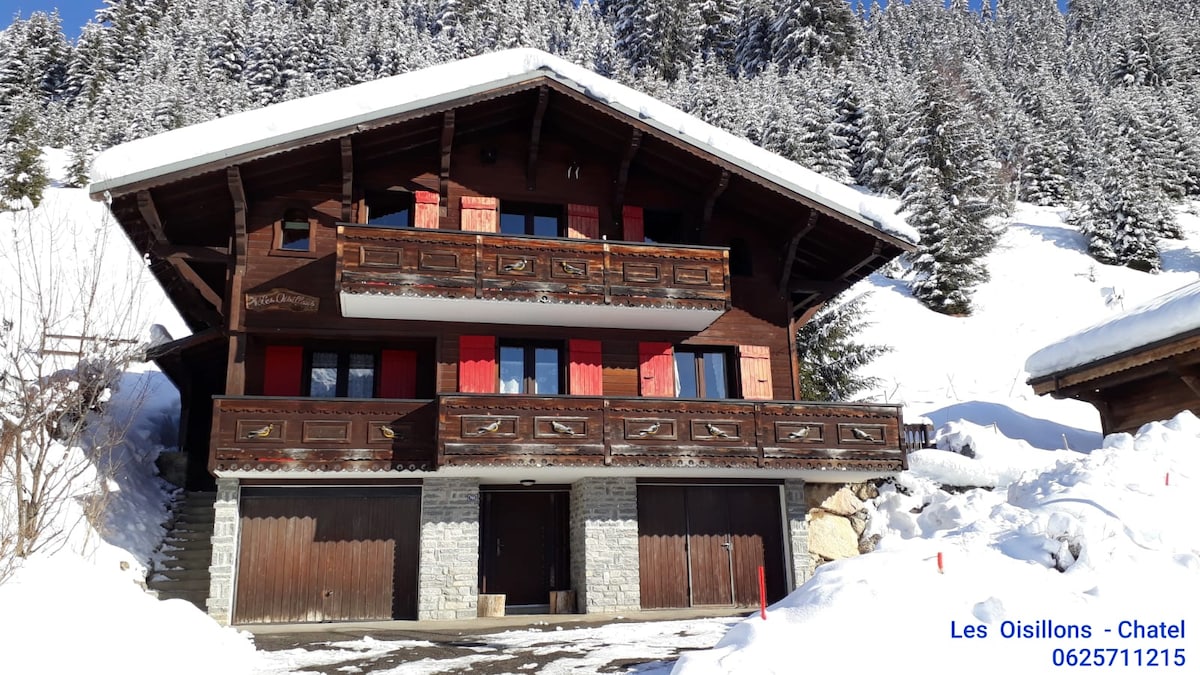 Authenthique grenier savoyard entièrement rénové à 1340m d'altitude, à côté des pistes de la Panthiaz, dans le domaine "Les Portes du Soleil". Plein sud, vue unique sur la vallée et les "Dents du midi". Par grande neige, nous assurons la navette en moto-neige et/ou SSV jusqu'au premier parking accessible aux voitures. Retour au chalet skis aux pieds possible.
