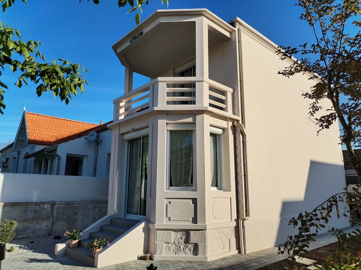 Maison classée 3 étoiles à Charentes Tourisme, restaurée sur la base d'un ancien chai, matériaux BIO, se compose à l'étage de 3 chambres avec salle de douche,wc (modulables lits simples 80cm ou 90cm, double 160 ou 180 cm. Location draps, serviettes possible, salle de douche, wc au RDC, pièce à vivre (salon, SAM, cuisine avec lave-vaisselle), patio avec plancha et garage à vélos. Internet fibre.Magnifique plage à 1200 m, baignade surveillée, boulangerie/épicerie, parking à 200m. NON FUMEUR