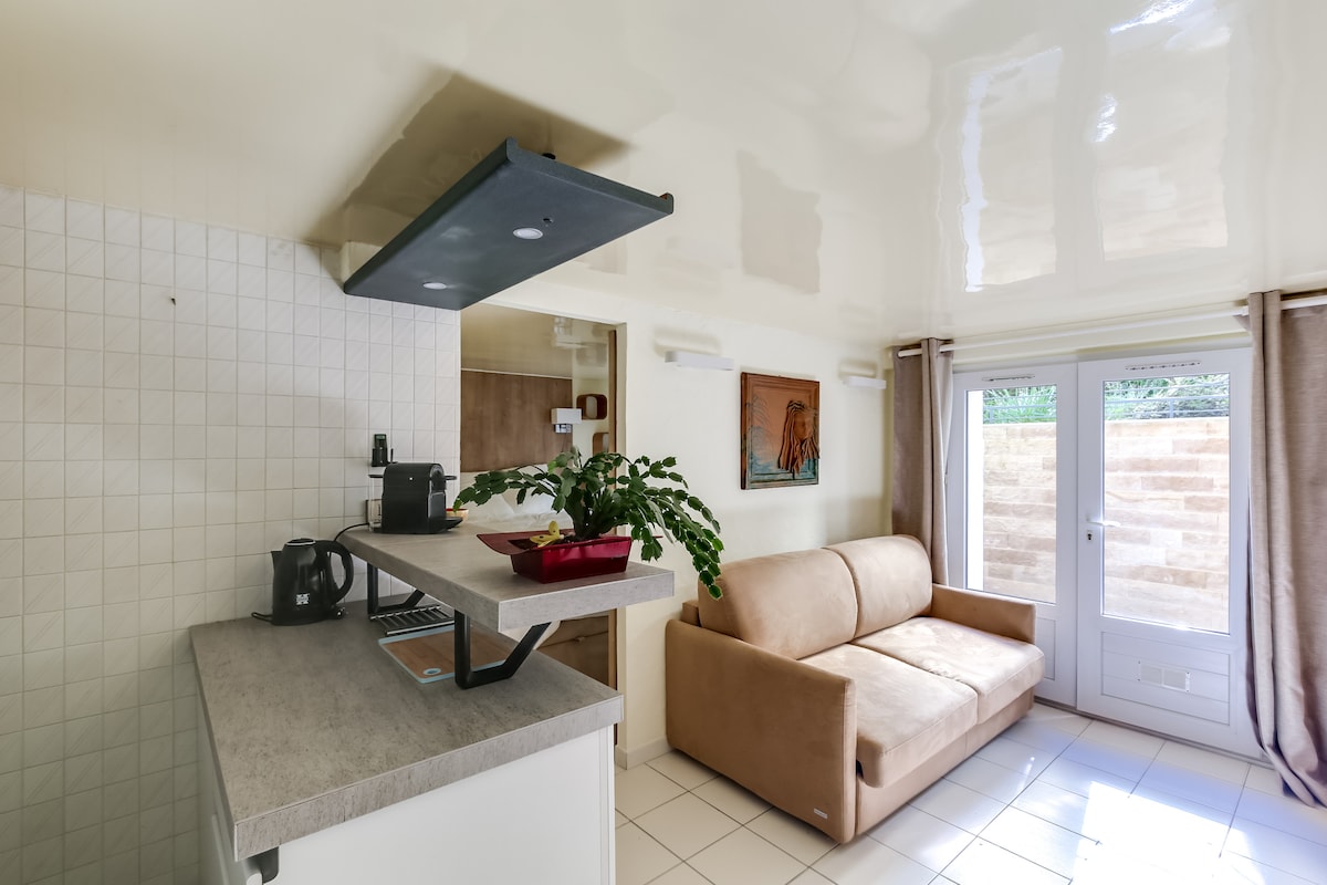 Cosy one bdr, 32 sqm flat renovated in 2017. Accommodates up to 4 guests (2 in the bedroom with its double bed and 2 in the living room with its double sofa bed). 10 min walking distance from the Parc de Sceaux, 5 min by foot from the Sceaux Robinson station of the RER B (railway leading to central Paris), and from the Law and Pharmacy universities. Paris is 15 minutes away by car. Garden, parking space and pool are available for guests.