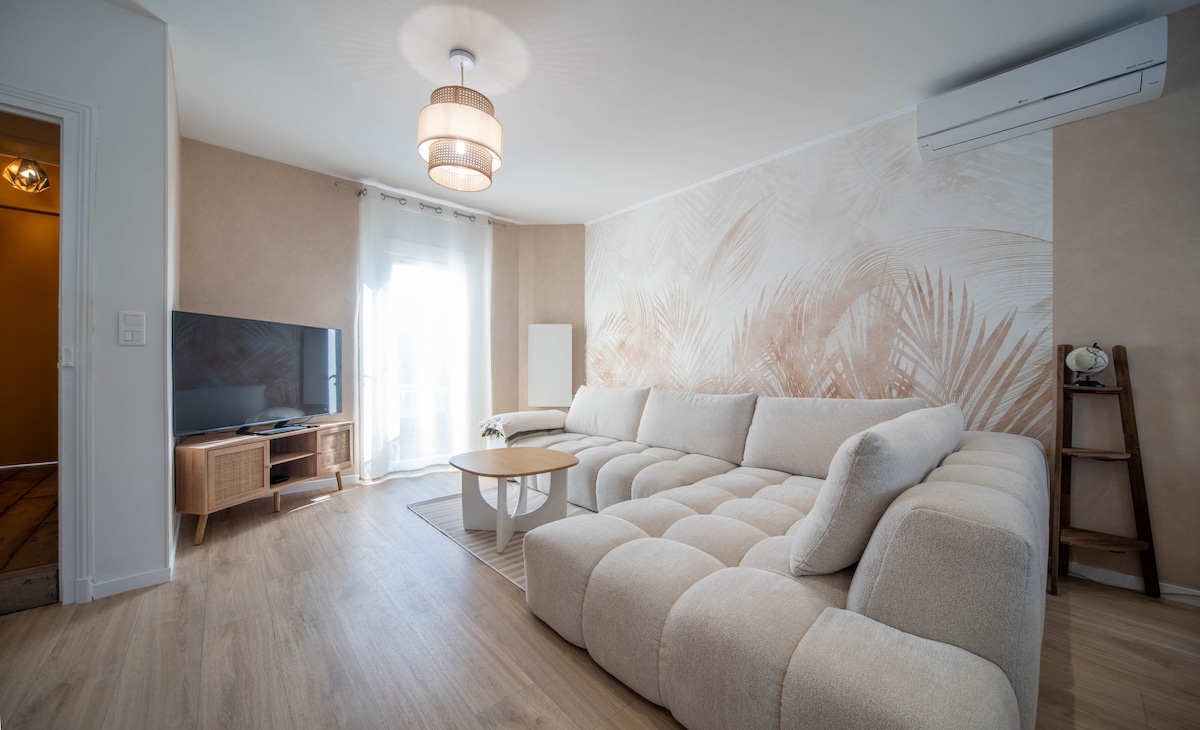 situé à 2 mn sortie autoroute A6 à Chalon /sur/Saône centre, proche de la route des vins de Bourgogne, logement de plain-pied avec terrasse équipée d'un barbecue et d'une plancha , salon de jardin, hamac, grand jardin clos pour accueillir également votre animal de compagnie ( 1 seul) , lit bébé , chaise haute, poussette, baignoire, jouets et livres. Tous commerces à proximité . Emplacement privatif pour votre véhicule ( recharge interdite) . Idéal pour une étape sur la route des vacances