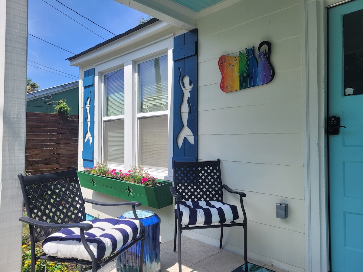 Kick back and relax in this calm, stylish space. Peaceful setting and super quiet neighborhood. Enjoy my amazing slice of heaven! Private, whimsical, side patio with charcoal grill, great front porch, and super quiet area. Yet, only 4 blocks to the beach & back river for incredible sunsets and 8 blocks to the downtown district and peir. This is a house split in half, so locked doors between you but noise consideration is appreciated!