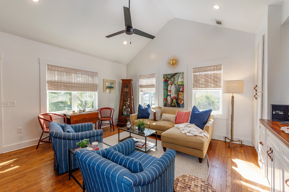 Located mid-island, convenient to everything. Less than 5 minute walk to the Beach! This is an iconic 1940 "Tybee Island Beach House" built in an elevated style that is a typical architectural vernacular to Tybee. Original detailing abounds throughout with a perfect mix of old and new to create a super cozy, beachy vibe. Bright, light, and airy cottage with crisp white and navy accents throughout create a chic Low Country vibe while retaining the essence of a typical beach shack.