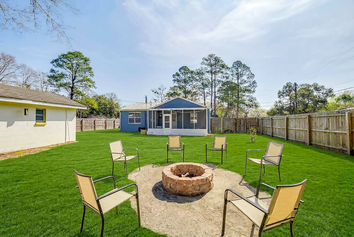 Discover our Bungalow by the Lagoon, a mid-century coastal retreat with 3 bedrooms, each with its own king bed and TV, along with 2 full bathrooms. Unwind on the covered deck with an outdoor TV or gather around the Solo Stove fire pit on the patio. A private lagoon dock offers serenity, and amenities include cable TV, a stocked coffee bar, and close proximity to grocery stores and restaurants. Equidistant from Tybee Island Beach and downtown Savannah. Your coastal retreat is waiting!