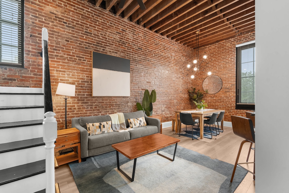 Historic 1860s Loft • Exposed Brick + Beams • Prime Congress Street Location! • Right in the thick of downtown life: step out into the gorgeous city! • 2 King Beds • Sectional sofa with pull-out sleeping option • Beautifully restored hardwood floors • Ultra-high ceilings with exposed beams • Washer & dryer (free to use during your stay) • 65” Smart TV in living room + Roku TVs in bedrooms This is a licensed short-term rental in the City of Savannah, GA. Permit #SVR-03218 License SVR-03218.