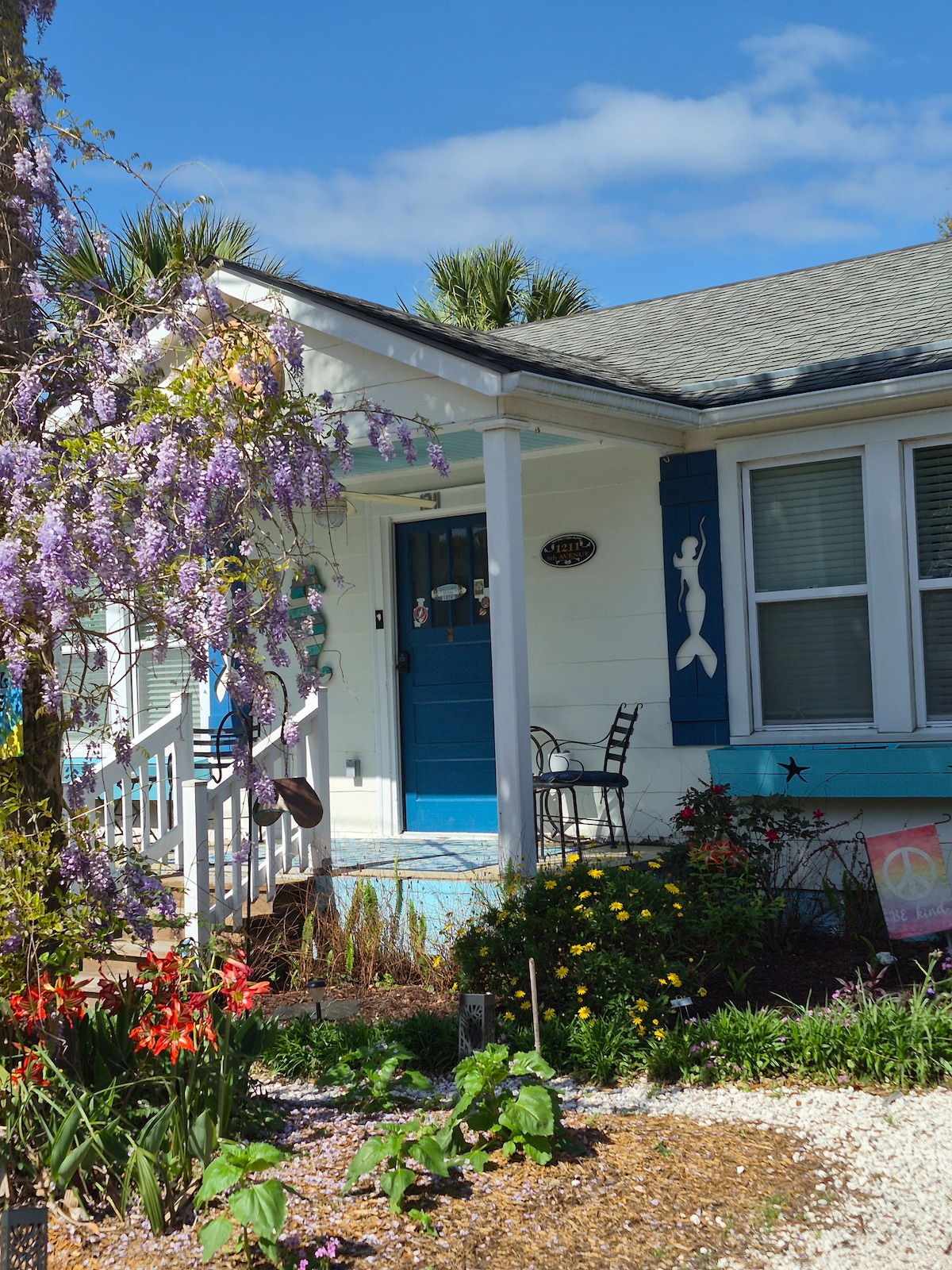 Kick back and relax in this calm, stylish space. Peaceful setting and super quiet neighborhood. Enjoy my amazing slice of heaven! Private, whimsical, side patio with charcoal grill, great front porch, and super quiet area. Yet, only 4 blocks to the beach & back river for incredible sunsets and 8 blocks to the downtown district and peir. This is a house split in half, so locked doors between you but noise consideration is appreciated!