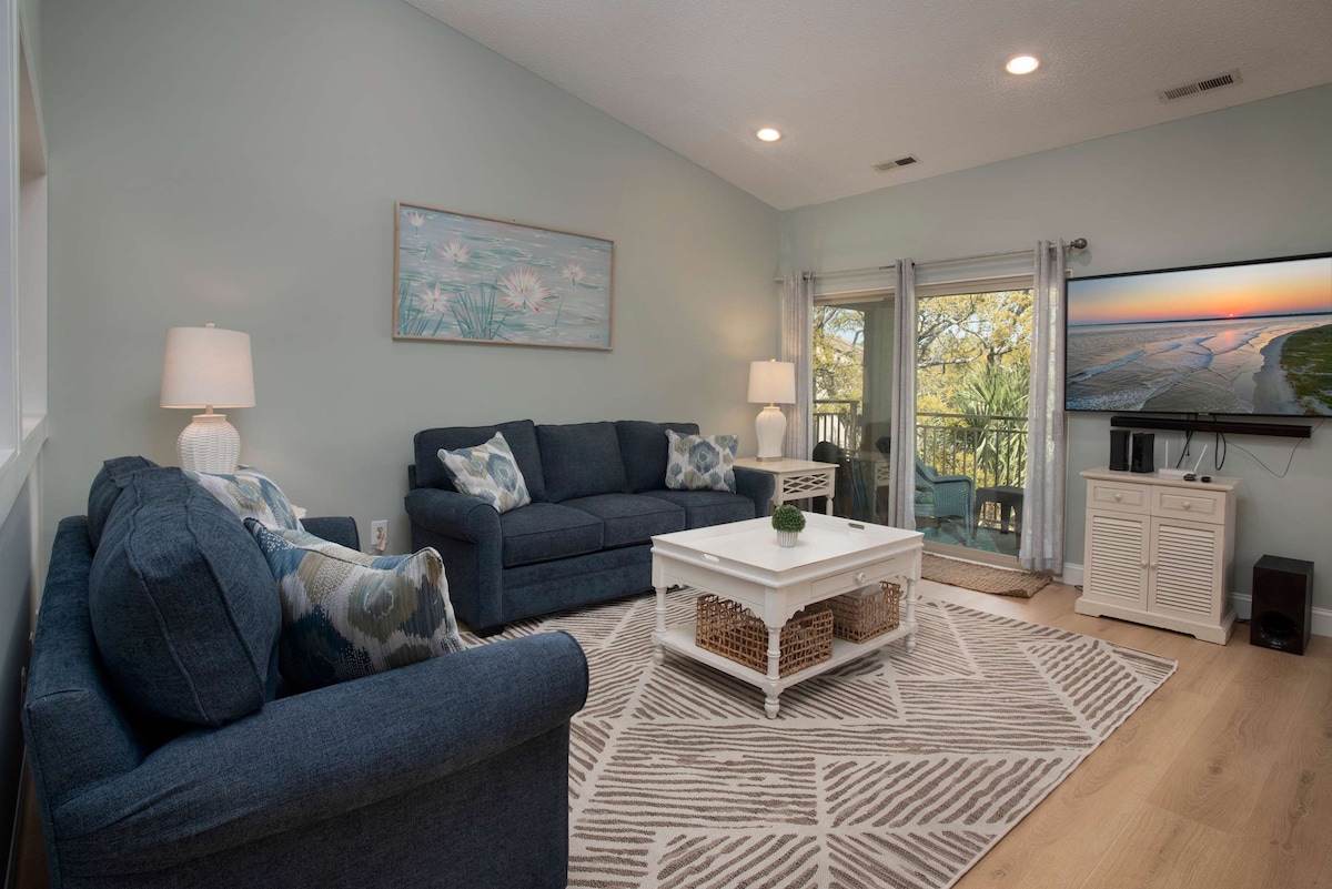 Welcome to 1697 The Bluffs! This recently updated Bluffs Villa is located in the heart of South Beach Marina Village at the tip of Sea Pines Resort. Perfect for couples or small family, this third floor villa is a comfortable and relaxing retreat after you spend your day at the beach, on the water or along the golf course fairways.