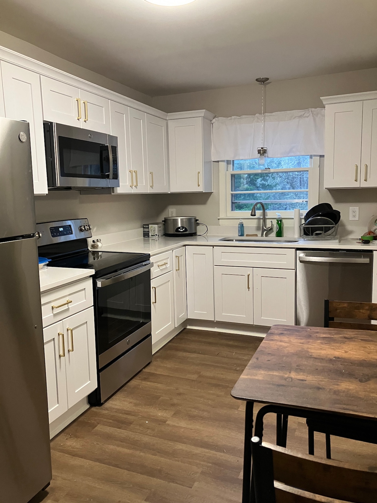 The Historic Farmhouse has been fully updated with all the modern conveniences while retaining the charm that makes it so special. Surrounded a horse farm, barns, and a scenic pond this homes provides a retreat while still being close to Chapel Hill, Durham and the airport - all a short 10-15 minute drive away. Jordan Lake is short drive/bike away, ready to offer water sports, fishing, and more. The downstairs can accommodate up to 4 people, while the upstairs adds 3 beds. Discounts available*