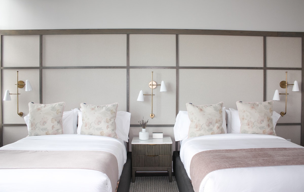 The Heritage Suite honors the rich history of our town. Past meets present in this beautiful corner suite, which features a luxury king bed and cozy sofa. After a long day, relax in front of your 75-in TV. In the living area, enjoy a 65-in TV, Marshall Bluetooth speaker, and a wet bar with refrigerator, freezer, and Nespresso. The fully equipped bathroom provides a zero-entry shower and Dyson hairdryer, luxury toiletries by D.S. and Durga, and Red Land Cotton towels, crafted in Alabama.