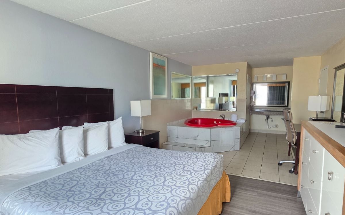 Settle into comfort in our Standard King Room at Bridge Creek Inn—perfect for solo travelers or couples. This stylish room features a plush king bed, smart TV, mini-fridge, and a modern bathroom with a walk-in shower. Natural light fills the space, creating a warm and relaxing atmosphere. Enjoy high-speed Wi-Fi and a cozy layout ideal for work or rest. Don’t miss Vandiver, our onsite restaurant and bar, serving up Southern-inspired cuisine and craft cocktails daily.