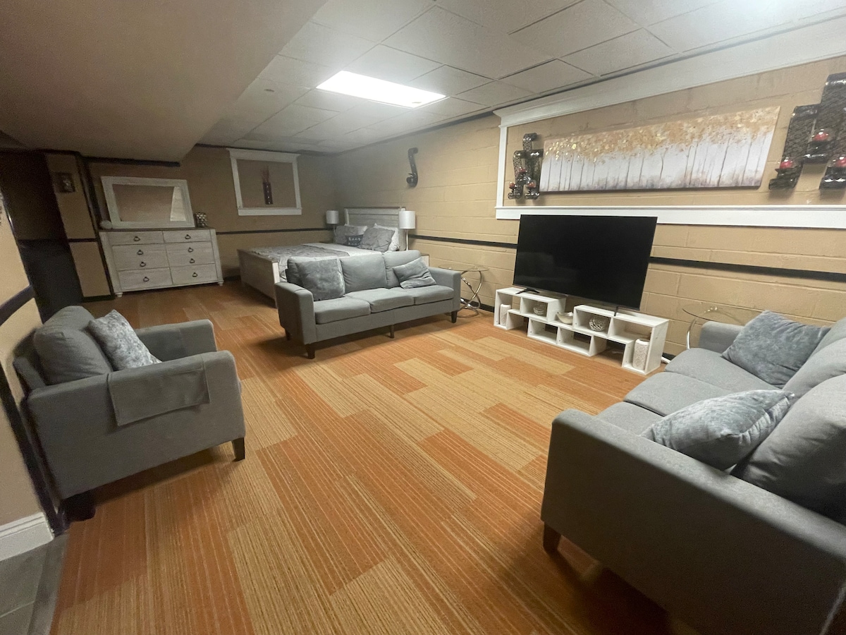 This patriot themed studio apartment sleeps 5. The apartment includes a queen, pull out queen sofa bed, optional roll out full bed, a full kitchen, 1 bathroom, full laundry area, with areas for relaxing, bonfire and a gas grill. The apartment offers cozy patriotic decor including several historic homes in the area. It's charming and includes a large room with designated areas for the bed and living area, a kitchen and separate bath. We are minutes from downtown Spartanburg. Kerri & Brian