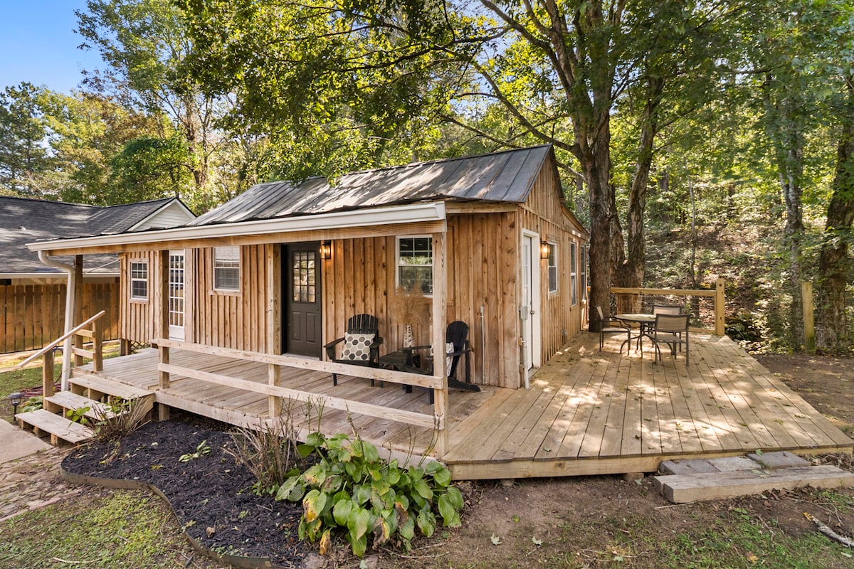 🌿All the convenience of town center, with the privacy and quiet of a country retreat. 🌿 This cozy guest room is detached from our family home, with a private entrance and outdoor living area. Our home’s expansive wooded lot is located on a quiet, established street in the heart of residential Dalton. Guests will enjoy reserved off-street parking and a peaceful place to rest after a day of travel, work, or recreation. This tiny home is just right for one, and cozy for two. No cleaning fee!