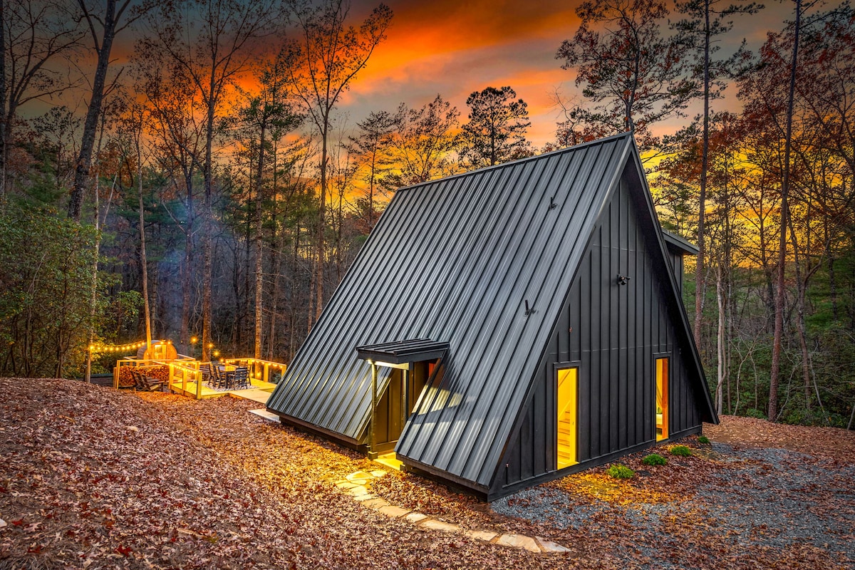 ATLAS A-frame is a modern Scandinavian inspired cabin nestled on a farm in the North Georgia mountains. This luxurious spa-like retreat offers two full bedrooms/bathrooms, a convertible loft (to sleep 6 total), and an expansive outdoor space with hot tub, fire pit and grill. Minutes from downtown Ellijay, local wineries and outdoor adventures. ATLAS is a collection of three unique cabins nestled in the foothills of the Blue Ridge Mountains. IG: @atlas_ellijay