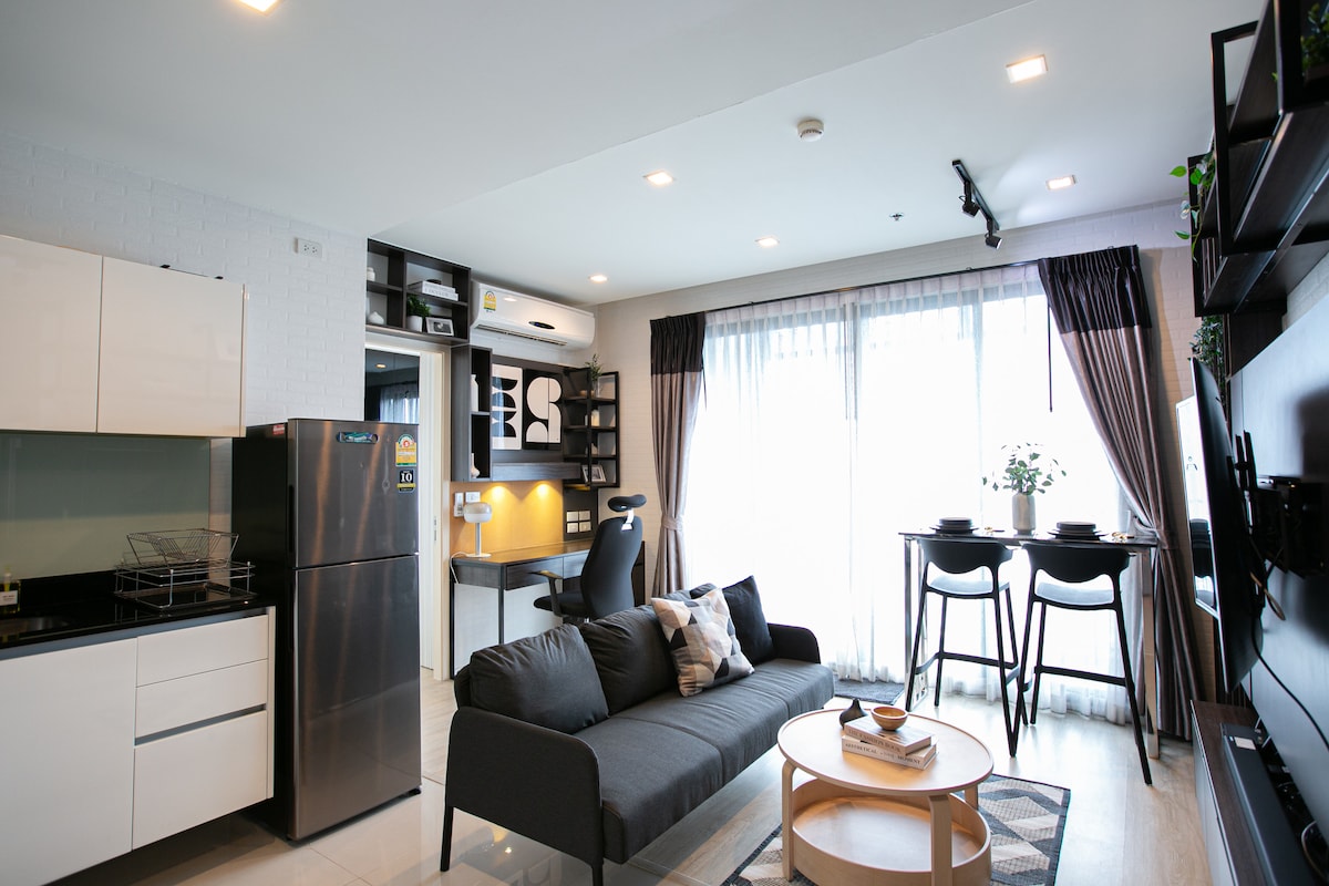 R1/时尚舒适的大城市客房@ Ratchada/步行2Train