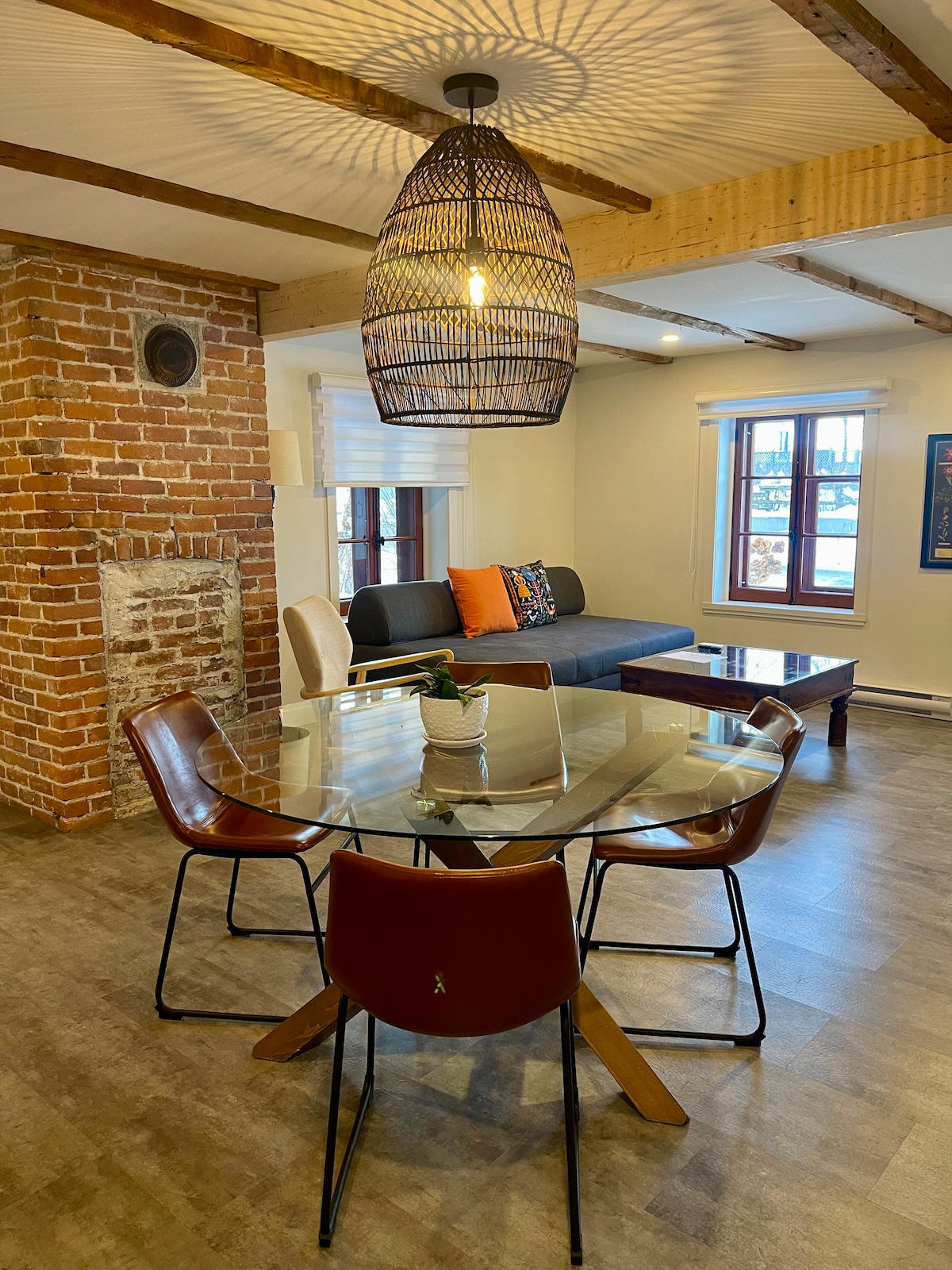 Notre loft minimaliste est l'endroit idéal pour vous immerger pleinement dans la détente et la solitude. Vous serez séduit par ses poutres d'origine et son décor moderne. Une porte vitrée donnant sur le jardin étant la seule source de lumière naturelle, un éclairage de goût a été soigneusement créé pour ce refuge paisible loin du monde extérieur. Cette caractéristique unique garantit un environnement reposant où vous pourrez véritablement vous détendre et vous ressourcer.