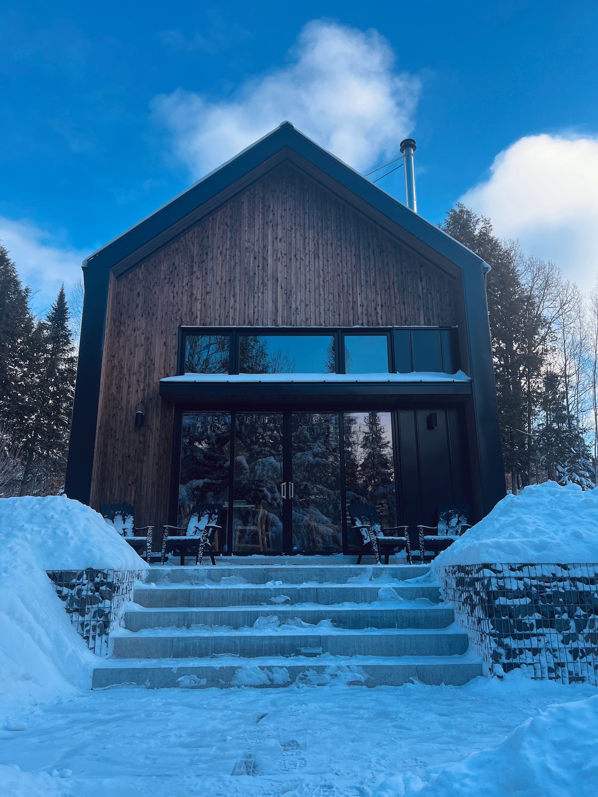 MAISON MYKINES est un luxueux chalet présentant un design moderne aux influences scandinaves! Sise sur un grand terrain avec spa, cette propriété entourée de forêt et bordée d'un petit lac arificiel vous offre l'endroit par excellence pour vivre un séjour inoubliable entre amis et famille! À 10 minutes du centre de ski le Massif, 15 min du Mont St-Anne et 20 min de Baie St-Paul: vous pourrez profiter au maximum des nombreux attraits touristiques de la magnifique région de Charlevoix!