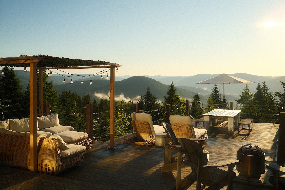 Nestled on an immovable rock since prehistoric times, at the heart of the mountain biking and outdoor network of Sentiers du Moulin, Tricera invites you to the summit of Maelström, at Mont Tourbillon. With its 360-degree windows, you won't believe the panoramic view of the mountains so close to the city of Quebec. Choose from the 4 different galleries to relax while being protected from the elements in privacy. With Tricera, glamping takes it to another level!