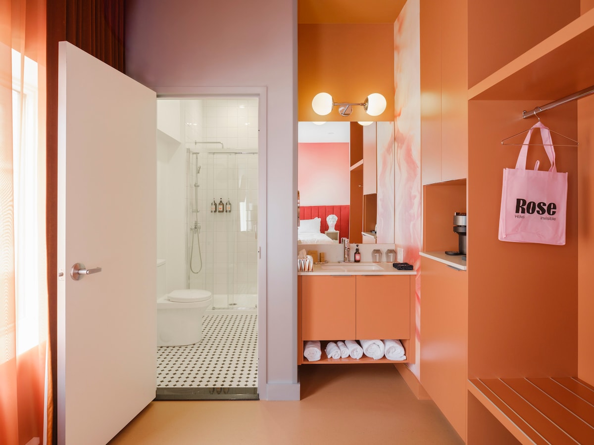 Que vous soyez en ville pour affaires ou pour le plaisir, cette unité offre le parfait mélange de confort et de style dans un emplacement central et pratique. Une décoration élégante, de jolis tons de pourpre, une grande vanité et des équipements modernes vous attendent. Profitez en plus d'une literie de qualité supérieure et d'un grand lit pour un confort inégalé.