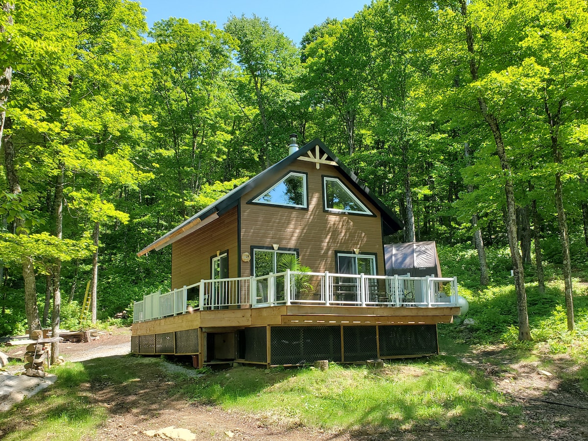 Envie d’une escapade en pleine nature? Ce chalet à flanc de montagne de style scandinave saura vous charmer. Avec son terrain de plus de 1 million pieds carrés, vous pourrez profiter d’un lac, d’une rivière, de sentiers pédestres, tapis de yoga et bien plus! Vous séjournerez dans un endroit où la détente et la nature sont au rendez-vous. Bien équipé, le chalet n’attend que vous! Conçu pour 2 personnes mais pouvant accueillir jusqu’à 3 personnes avec le canapé-lit (simple).