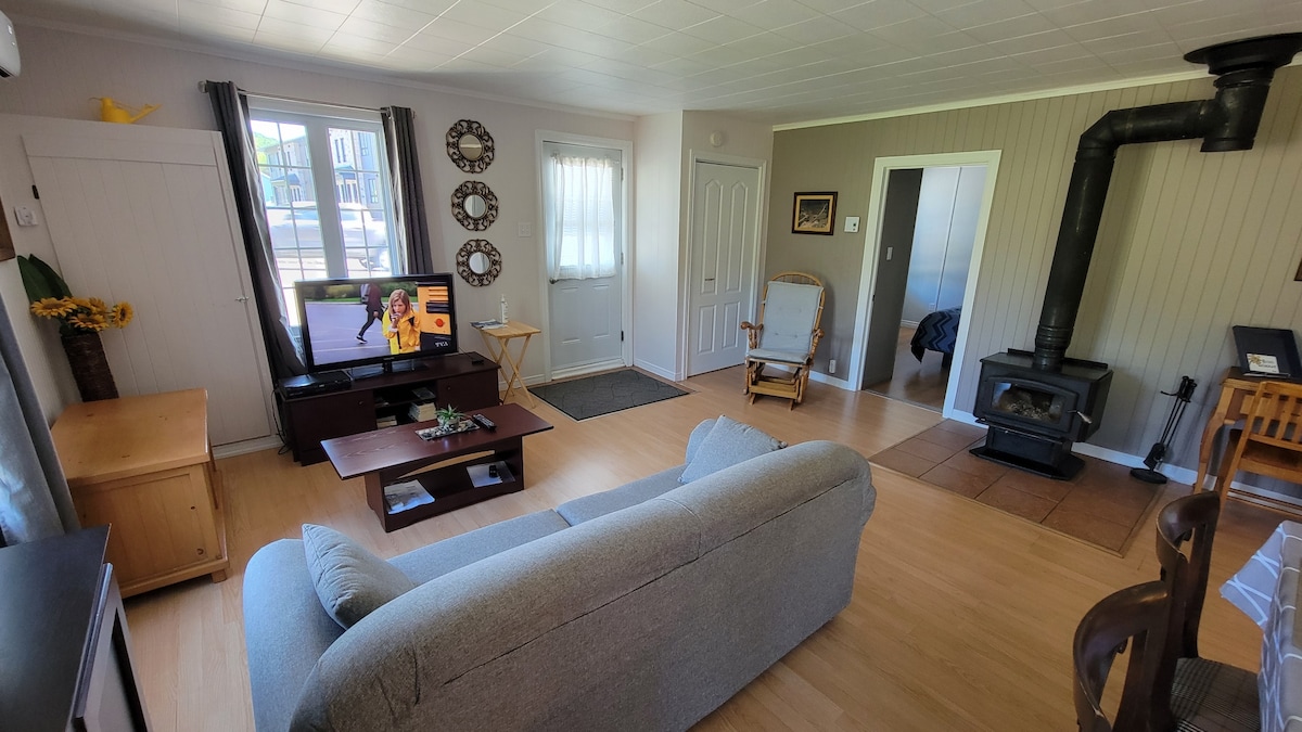La Chaumière.. le fleuve, confort et nature •. Havre de paix en pleine nature • Vue imprenable sur le majestueux fleuve •. Grande terrasse privée •. Wifi haute vitesse, smart TV • Appart. 1200 pi2, 3 chambres, rénové, tout équipé • Destination 4 saisons à 5 km de St-Jean-Port-Joli • Foyer au bois pour des soirées douillettes •. À 2 mins de l'excellente Queue de Homard restaurant familial