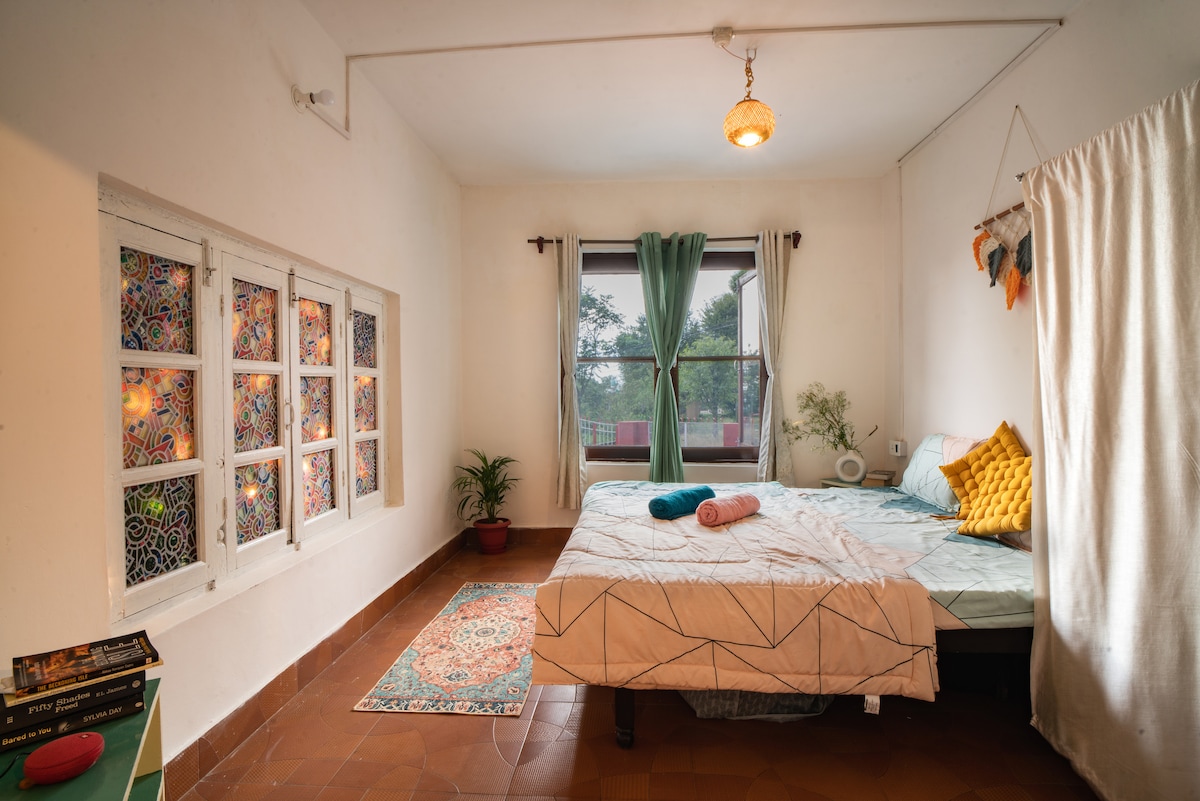 Perfect long term gateway or WFH station for family & group of friends A serene stay overlooking the rice farms with stunning mountain views, conveniently located away from the tourist hustle & yet close to the flying city Bir(2Km). The bathroom(not attached) is a mix of village style feel with modern amenities, has a shower, geyser & western style seat in a separate cubicle. Kitchen is fully functional with fresh supply of vegetables from garden along with basic ingredients supply.