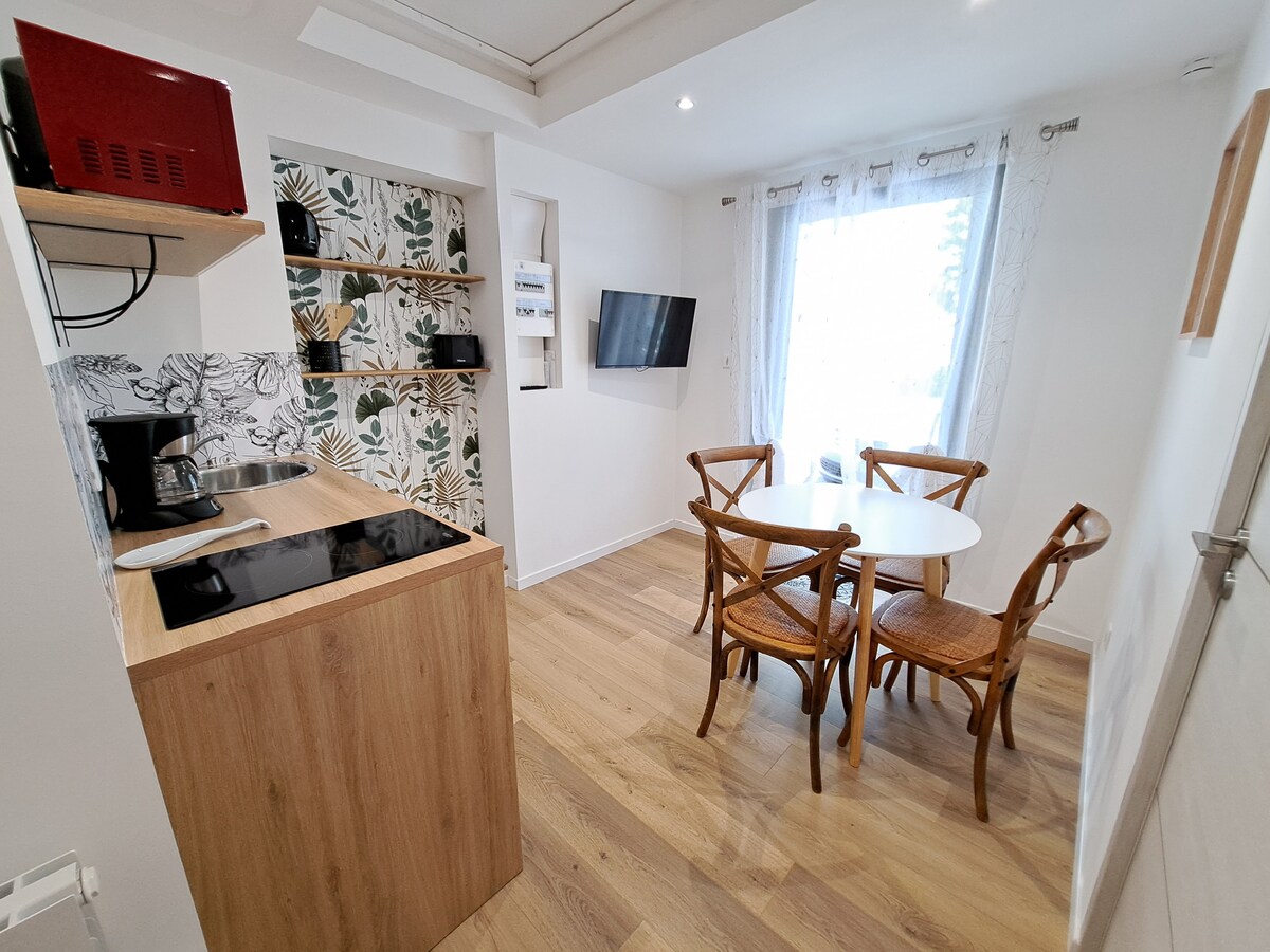 Appartement offrant une pièce lumineuse avec canapé-lit plutôt adapté pour un enfant, adolescent et son coin cuisine équipée, une chambre et salle d'eau avec toilette. L appartement fait environ 30m carrés. Il se situe au premier étage sans ascenseur. Etant en hyper centre ville, il peut-être compliqué de se garer surtout en période estivale. Nous ne pouvons pas contrôler les bruits nocturnes Situation idéale pour tout faire à pied, commerces, restaurants et promenades le long du chemin côtier.