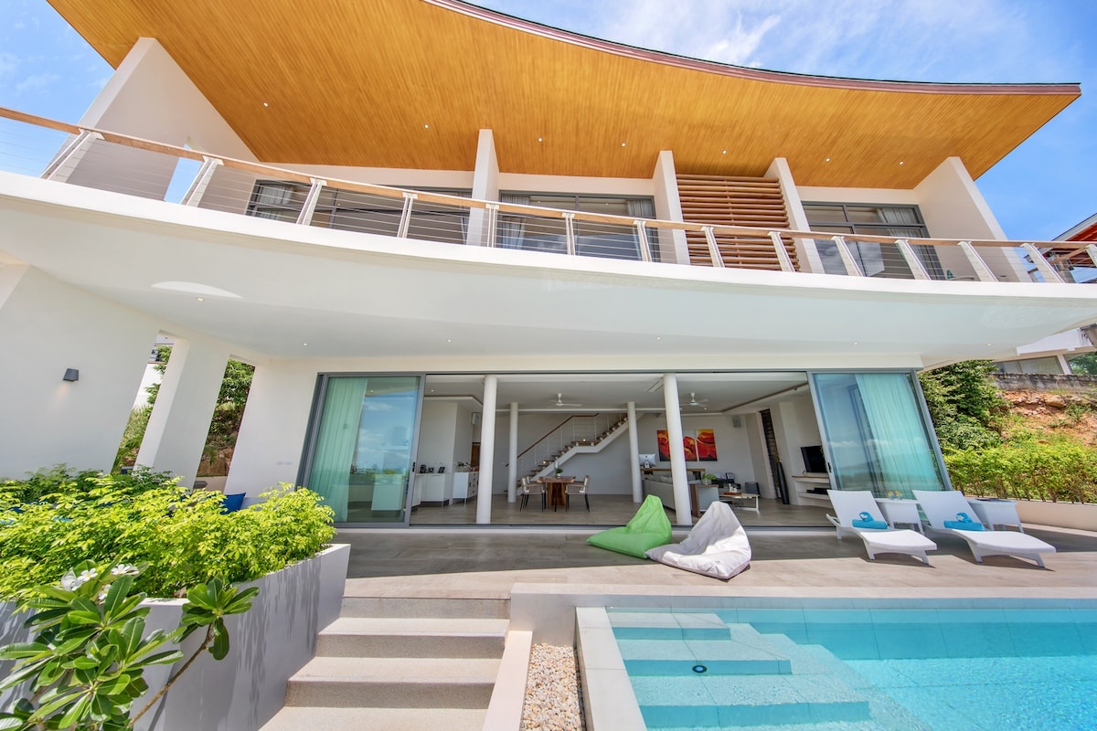 Villa Purana, Panacea Estate, Koh Samui | By The Luxe Nomad HIGHLIGHTS - Ideal choice for families or groups of friends. - Wake up to amazing ocean views. - Relax by the 20-meter infinity pool surrounded by tropical greenery. - Just a short drive away from the vibrant Bophut village with its glittering lights and the tranquil Maenam Beach. - Complimentary Wi-Fi throughout property.