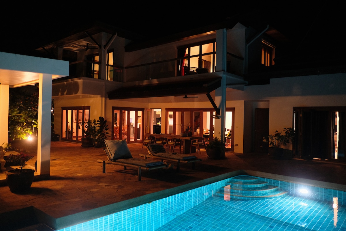 4 bedroom villa with private pool only 400 meter to beach. We have installed solar panels and electricity consumption during the day should be greatly reduced. Situated in quiet location only 5-10 minute walk to Fisherman Village night market every Monday, Wednesday, Friday , Saturday and Sunday.