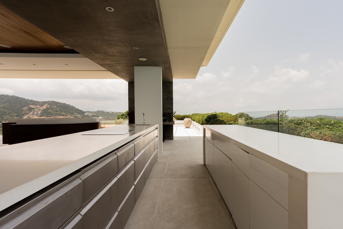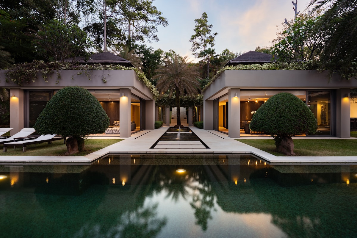 With an earthy color palette and plenty of wide openings to the terrace, Villa Hibiscus makes it easy for fresh ocean breeze and natural sunlight to provide a relaxing ambiance during your beach vacation. Rich wood tones, vaulted ceilings, intricate stone accents, and plenty of tropical greenery display the Koh Samui’s serene architecture, while high-end electronics, designer furniture, and state of the art appliances add a touch of modern luxury to this island oasis.