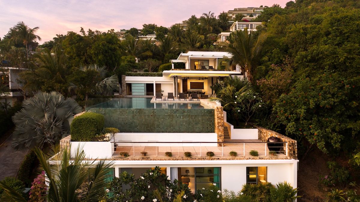 Villa Purana, Panacea Estate, Koh Samui | By The Luxe Nomad HIGHLIGHTS - Ideal choice for families or groups of friends. - Wake up to amazing ocean views. - Relax by the 20-meter infinity pool surrounded by tropical greenery. - Just a short drive away from the vibrant Bophut village with its glittering lights and the tranquil Maenam Beach. - Complimentary Wi-Fi throughout property.