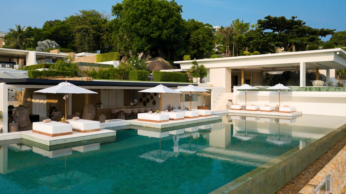 Palm fronds wave over the pool at this Scandi-style villa close to Koh Samui’s Chaweng Beach. Outside, the home is surrounded by verdant tropical gardens; inside, it’s appointed with blond wood and clean lines inspired by Nordic design. Drive 5 minutes to a white-sand beach lined with bars and restaurants ranging from the blissed-out to the dance-all-night. The villa is nestled onto 2,000 square meters of private grounds, with lush plantings (and umbrellas) shading its sunny terrace. Claim a spot on one of the loungers, splash around in the 15-meter pool and hot tub, and have drinks and dinner at the shaded alfresco sitting and dining areas on a veranda just off the house. Metal-framed windows lend modern style to the villa’s living and dining areas, separating them from the pool terrace and the fully equipped kitchen. Look for a mid-century influence in the armchairs opposite the sofas and around the dining table, and in the pale-wood cabinetry in the Scandi-chic kitchen. It’s a 9-minute drive from the villa to Chaweng Beach, a lively, sandy stretch known for its beachfront eateries and nightlife. Or head for Fisherman’s Village, where you can pick up souvenirs from tiny shops and snack on street food from local stalls. There are plenty of other beautiful beaches on Koh Samui, and plenty more in the sea beyond; organize a day trip on a boat to get close to smaller islands close by. Copyright © Luxury Retreats. All rights reserved. BEDROOM & BATHROOM • Bedroom 1 - Primary: King size bed, Ensuite bathroom with stand-alone rain shower, Dual vanity, Safe, Desk • Bedroom 2: 2 Twin size beds (can be converted to a king), Ensuite bathroom with stand-alone rain shower, Desk • Bedroom 3: 2 Twin size beds (can be converted to a king), Ensuite bathroom with stand-alone rain shower, Dual vanity, Desk • Bedroom 4: King size bed, Ensuite bathroom with stand-alone rain shower, Dual vanity, Desk • Bedroom 5: King size bed, Ensuite bathroom with access to hallway, Stand-alone rain shower, Dual vanity, Desk • Bedroom 6: 2 Twin size beds (can be converted to a king), Ensuite bathroom with stand-alone rain shower, Dual vanity, Desk • Bedroom 7: 2 Twin size beds (can be converted to a king), Ensuite bathroom with stand-alone rain shower, Desk • Bedroom 8: King size bed, Ensuite bathroom with stand-alone rain shower, Dual vanity, Safe, Desk FEATURES & AMENITIES • More under “What this place offers” below Included • More under “What this place offers” below Extra cost (advance notice may be required): • Activities and excursions • Additional airport transfers • More under “Add-on services” below