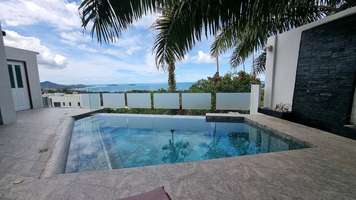 Enjoy a stylish experience at this recently renovated centrally-located 2 bedroom villa with some of the best views of Koh Samui. With a roof top terrace and private saltwater infinity pool 2 bedrooms 3 bathrooms Private parking Private infinity pool 24h communal gym Super fast private fibre Wifi Large kitchen with Oven, Coffee machine, Microwave, Washing machine, dishwasher Living room and bedrooms have smart TVs Hot tub Japanese automatic toilets Whole villa water filtration system