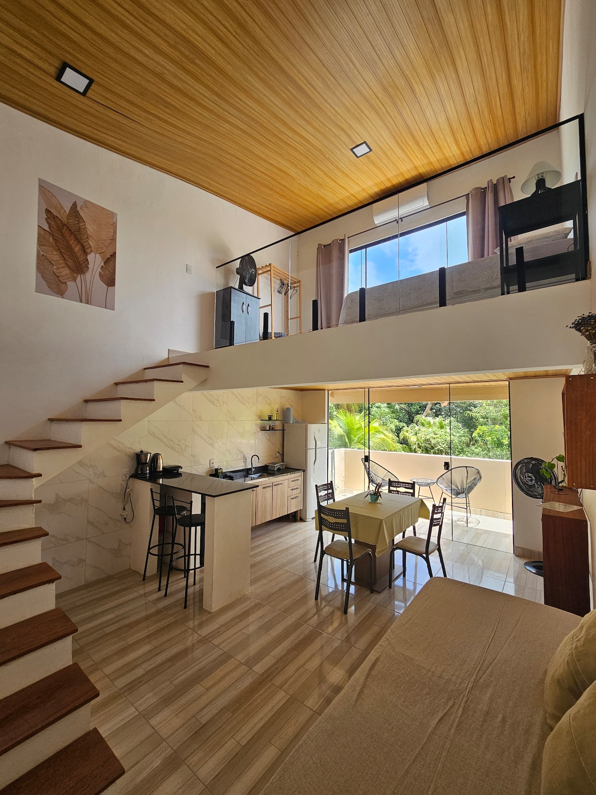 Excelente localização, sem morros. Estamos na rua principal, menos de 10 min do centro e a poucos metros da praia, onde estão os melhores restaurantes e bares. Oferecemos área de trabalho, ar condicionado, wifi, frigobar, microondas, sanduicheira, cafeteira, utensílios básicos, pia, roupa de cama e banho, banheiro privativo, varal e área externa. A Suíte possui uma cama de casal e uma cama auxiliar (estilo gaveta). Ambiente tranquilo, confortável e moderno. Garantimos fidelidade às fotos.