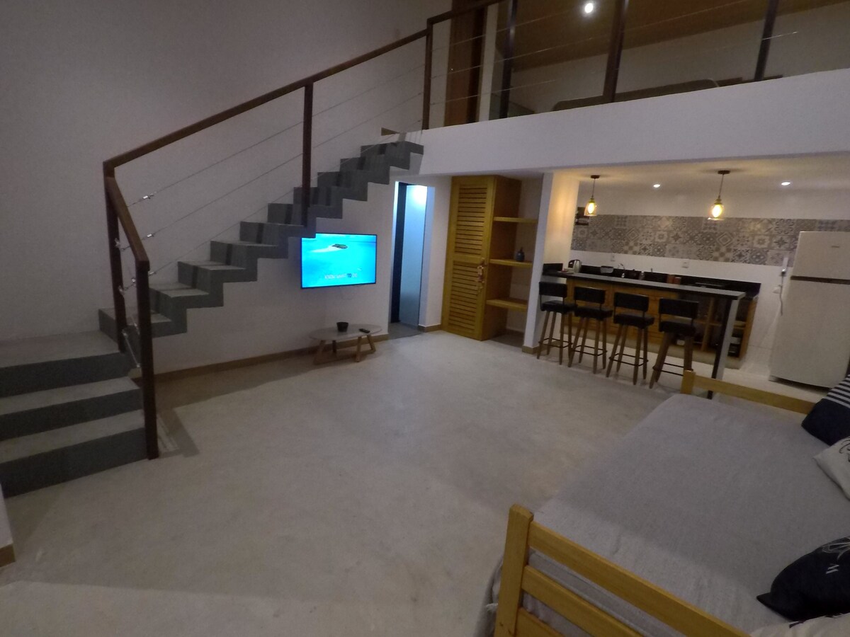 Nossa propriedade é composta por suítes que foram projetados pra receberem hóspedes que desejam um ótimo conforto por um preço justo. São suítes com banheiro, área de serviço e varanda. Uma ótima suíte para 2 a 3 pessoas. Muito bem planejado, muito bem limpo e decorado. O que vai fazer você se sentir super a vontade e com vontade de passar mais dias. Para ajudar a se proteger, sempre use o Airbnb para fazer pagamentos e se comunicar com os anfitriões.