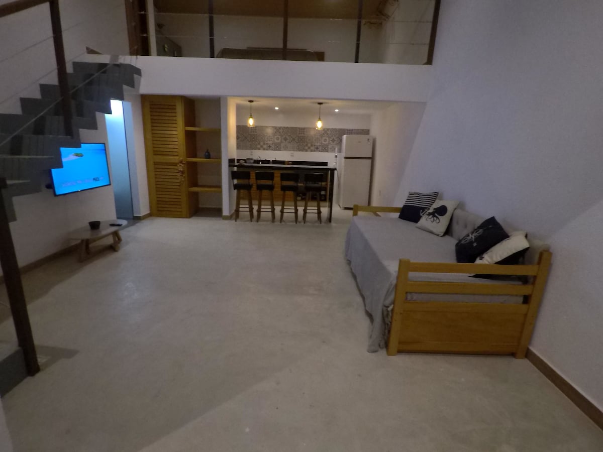 Excelente localização, sem morros. Estamos na rua principal, menos de 10 min do centro e a poucos metros da praia, onde estão os melhores restaurantes e bares. Oferecemos área de trabalho, ar condicionado, wifi, frigobar, microondas, sanduicheira, cafeteira, utensílios básicos, pia, roupa de cama e banho, banheiro privativo, varal e área externa. A Suíte possui uma cama de casal e uma cama auxiliar (estilo gaveta). Ambiente tranquilo, confortável e moderno. Garantimos fidelidade às fotos.