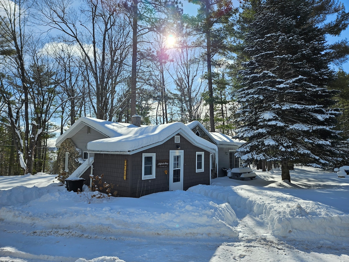 舒适的冬季小屋-靠近Mullett Lk。冰鱼、滑雪!